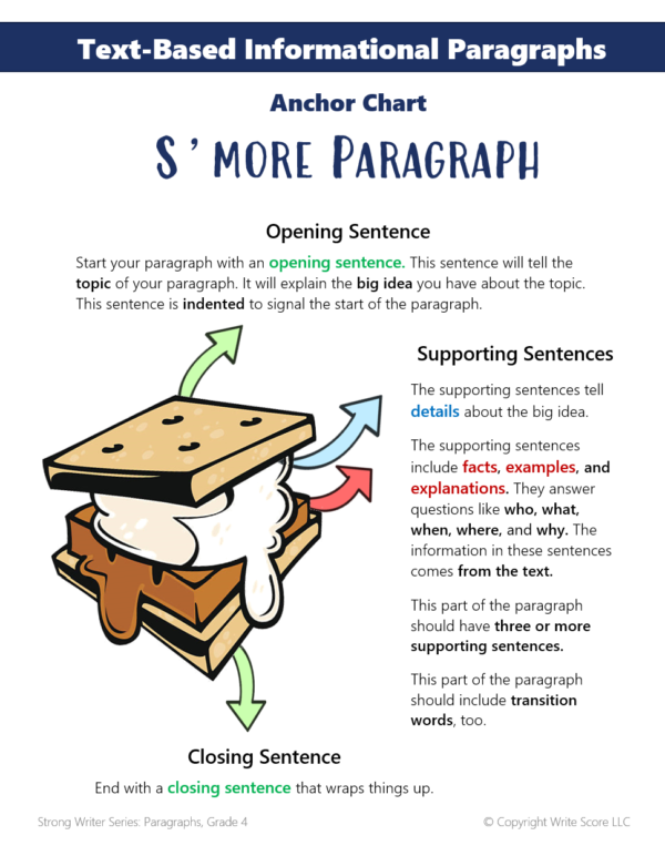 This work text is designed to help students master the art of writing cohesive paragraphs, which leads to writing strong essays. To this end, the progression of five different units within the booklet is purposefully designed to begin with non-text-based paragraph construction, followed by more complex text-based writing, and culminating in an introduction to text-based essay writing. With nearly 40 lessons, anchor charts, teaching notes, and activities, students’ writing will greatly improve.